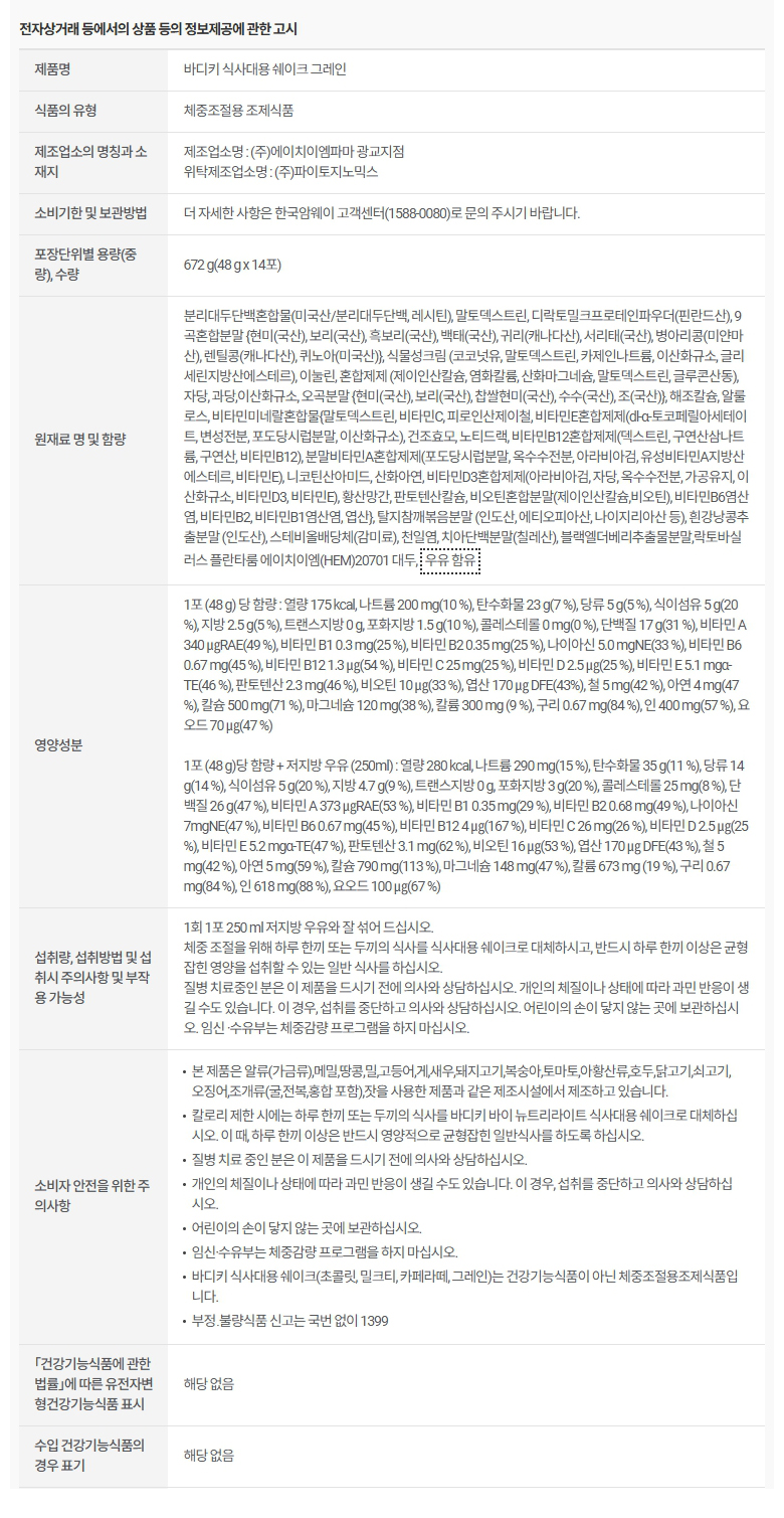 암웨이 바디키 식사대용 쉐이크 그레인 (14포)