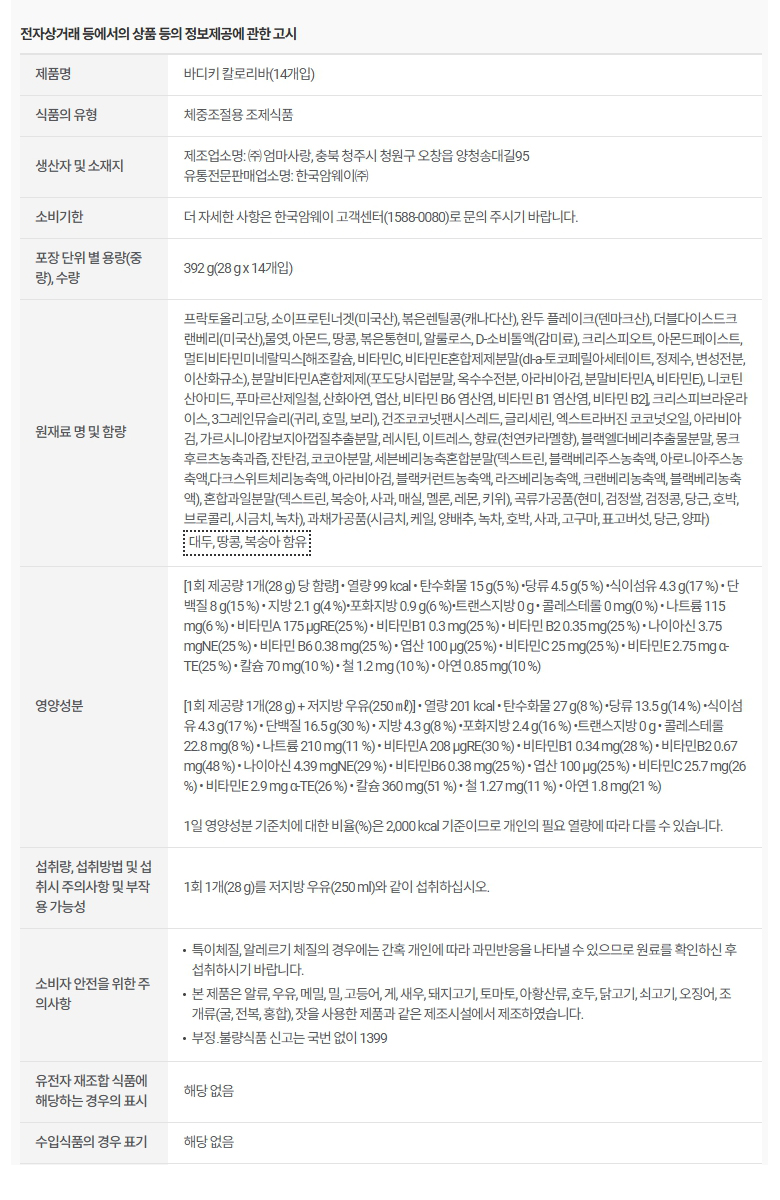 암웨이 바디키 칼로리바 (14개)