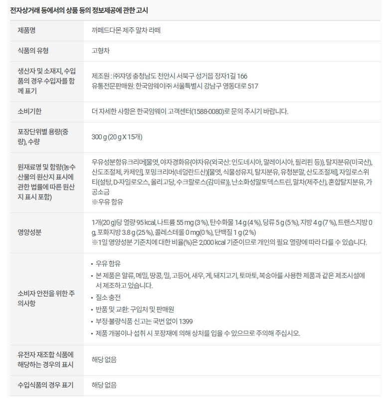 암웨이 까페드다몬 제주 말차 라떼 (20g X 15개)