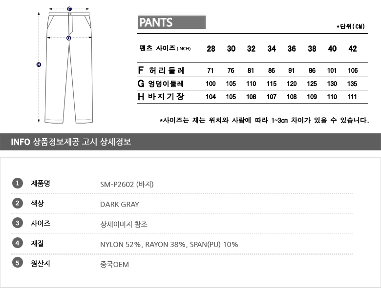 SM-P2602,작업복하의,봄작업복,가을작업복,근무복,춘추작업복